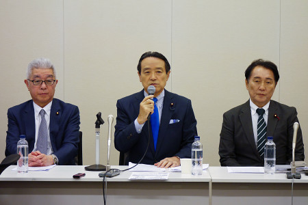 立憲民主党の有志議員による勉強会「不公平税制の抜本改革で消費減税の財源をつくる会」(会長・江田憲司元代表代行)は16日、先にまとめた消費税率を一律5%へ引き下げる法案の骨子案を野田佳彦代表に提出した。 【時事通信社】