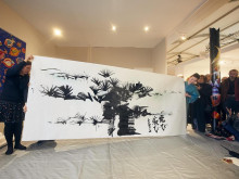 書道教室「和樂書院」(北九州市小倉北区金鶏町)を主宰する書道家の栗原光峯(こうほう)さんが10月30日、フランス・パリ中心部のコンコルド広場で開催されたアート展「サロン・ドートンヌ2025」で大書パフォーマンスを披露した。