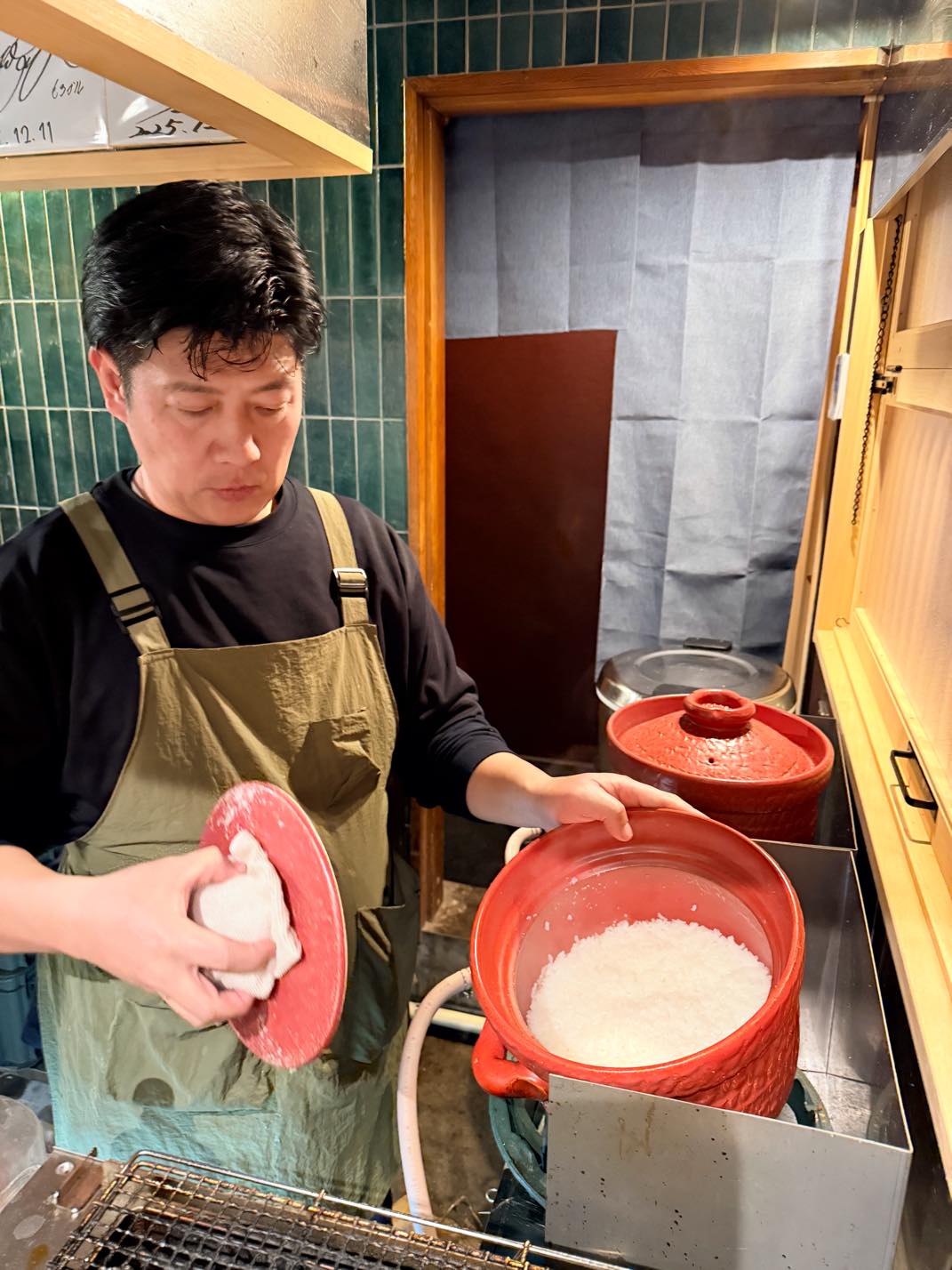 羽釜の火力調整をしながら「毎日7升の米を炊く」