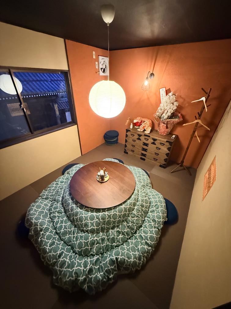 2階の個室は丸テーブルのこたつを用意する