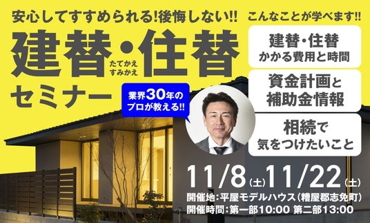 不動産資産管理会社の三和エステート株式会社(本社:福岡市博多区博多駅南1丁目、代表取締役社長:田代 雅博)は、家づくりを検討されている方を対象に、「安心してすすめられる!後悔しない。建替・住替セミナー」を開催いたします。