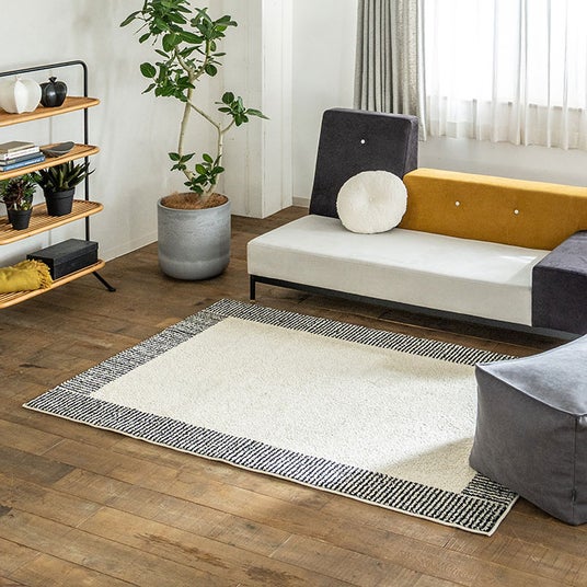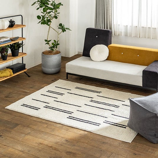 モロッコの伝統的なラグ「ベニワレン」をモチーフに、現代の暮らしにフィットする新作ラグが誕生しました。ホワイト(アイボリー)のベースにブラックのラインを配した明快なコントラストが特徴で、北欧、モダン、ナチュラルなど幅広いインテリアテイストに調和します。