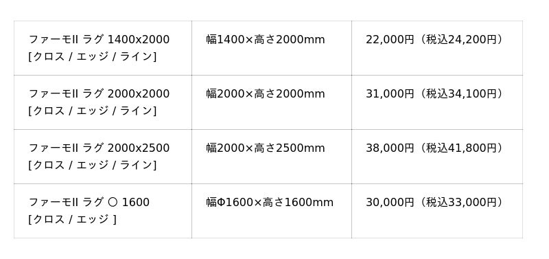 ※「ファーモII ラグ 〇 1600」はライン柄の取り扱いはありません。