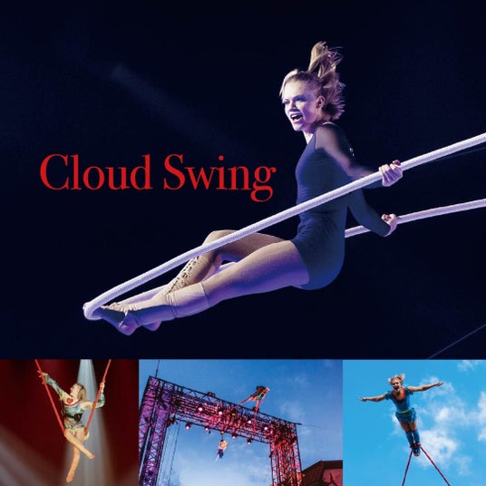 ループ状のロープを使い、まるで雲の上を舞うようにスイングするクラウドスウィング。高い技術と表現力が融合した、迫力あふれるダイナミックな空中パフォーマンス。