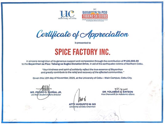 デジタル・トランスフォーメーションを支援するスパイスファクトリー株式会社(本社:東京都港区、代表取締役CEO:高木 広之介)は、フィリピン・セブ島北部で発生した地震および中央部を襲った大型台風の被災地復興支援のため、セブ大学の支援受付窓口へ寄付を行いました。