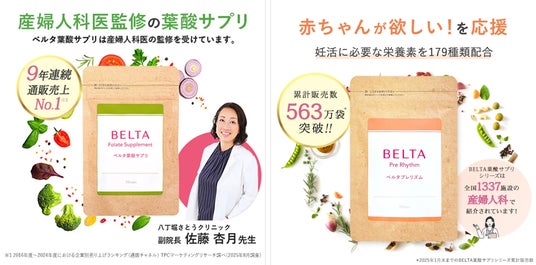 中でも「ベルタ葉酸シリーズ」は、妊活期・妊娠期・授乳期の栄養バランスをサポートする製品としてシリーズ累計563万個を突破しており、国内マタニティサプリ市場において高い認知と信頼を獲得しています。