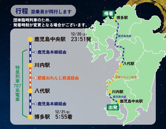 12月20日発:鹿児島中央駅発/博多駅着の行程