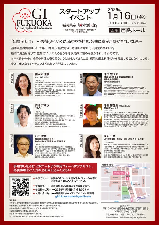 このGI指定を機に、より多くの方に福岡県産の日本酒の魅力を知っていただくために、この度スタートアップイベントを開催します。