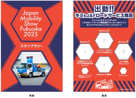 JAF福岡支部(支部長 佐竹伸一)は、12月18日(木)~21日(日)、マリンメッセ福岡(福岡市博多区)で開催される「ジャパンモビリティショー福岡2025」において、JAFロードサービスのお仕事体験ができるスタンプラリーを開催します。