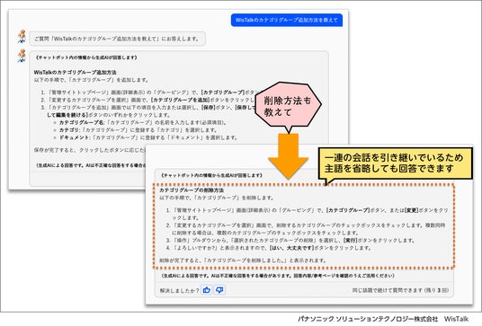 パナソニック ソリューションテクノロジー株式会社(本社:東京都、代表取締役社長:伊藤 一義)は、2025年12月、社内問い合わせ・ナレッジ活用向けAIチャットボット「WisTalk(ウィズトーク)」のバージョンアップを実施しました。